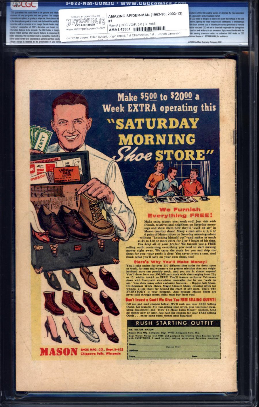 Fantastic Four in their first crossover to bring in new readers.) This first issue has since remained a cornerstone of comic collecting — with co-creators Stan Lee and Steve Ditko bringing in the first appearance of J. Jonah Jameson as one of the most iconic supporting characters in the history of comics. Fans also meet JJJ's astronaut son John, along with seeing The Chameleon's debut as Spidey’s first supervillain.