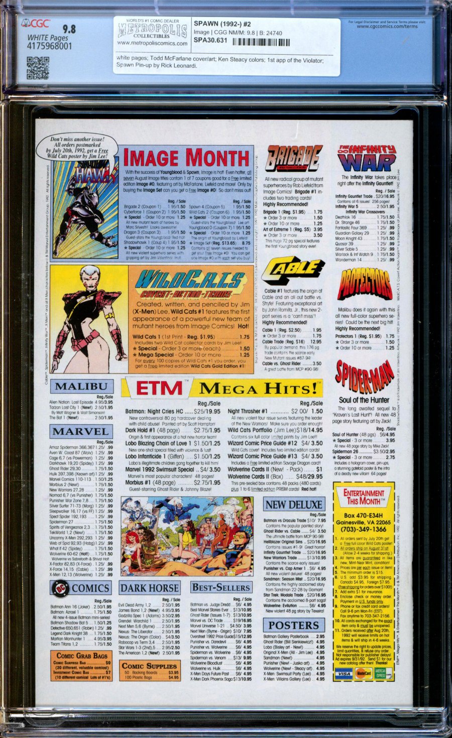 Todd McFarlane cover/art; 1st app of the Violator; Spawn Pin-up by Rick Leonardi; COMIC BOOK IMPACT rating of 7 (CBI)