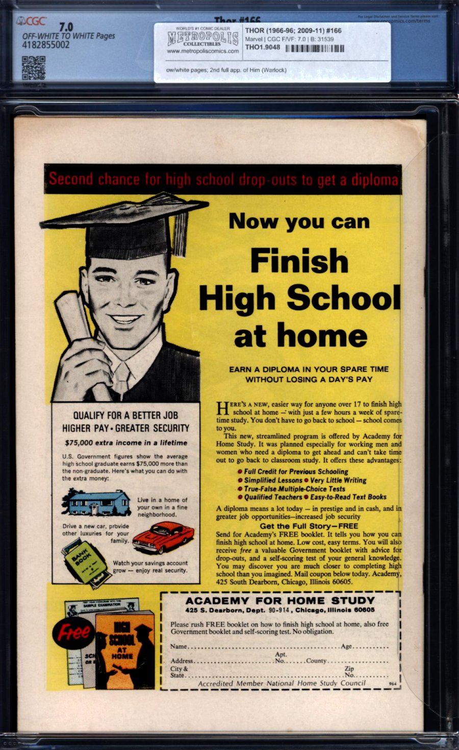 2nd full app. of Him (Warlock); classic battle issue; COMIC BOOK IMPACT rating of 7 (CBI)First 15-cent cover price. Cover pencils by Jack Kirby and John Romita (alterations), inks by Vince Colletta and John Romita (alterations). Second Adam Warlock appearance ("Him") in "A God Berserk!" script by Stan Lee, pencils by Jack Kirby, inks by Vince Colletta; After Adam Warlock takes off with Sif, Thor picks up his hammer and starts swinging! A battle of brawn and rage ensues between two divine beings! Will Thor fully succumb to the ailment Asgardians call "Warrior Madness"? After a previous hiccup, Karnilla recovers her plot to gain Balders love; What sorcery does Haag have up her sleeve this time? Adam Warlock, portrayed by Will Poulter, will make his live-action debut in Guardians of the Galaxy Vol. 3 (2023), which is set in the Marvel Cinematic Universe.