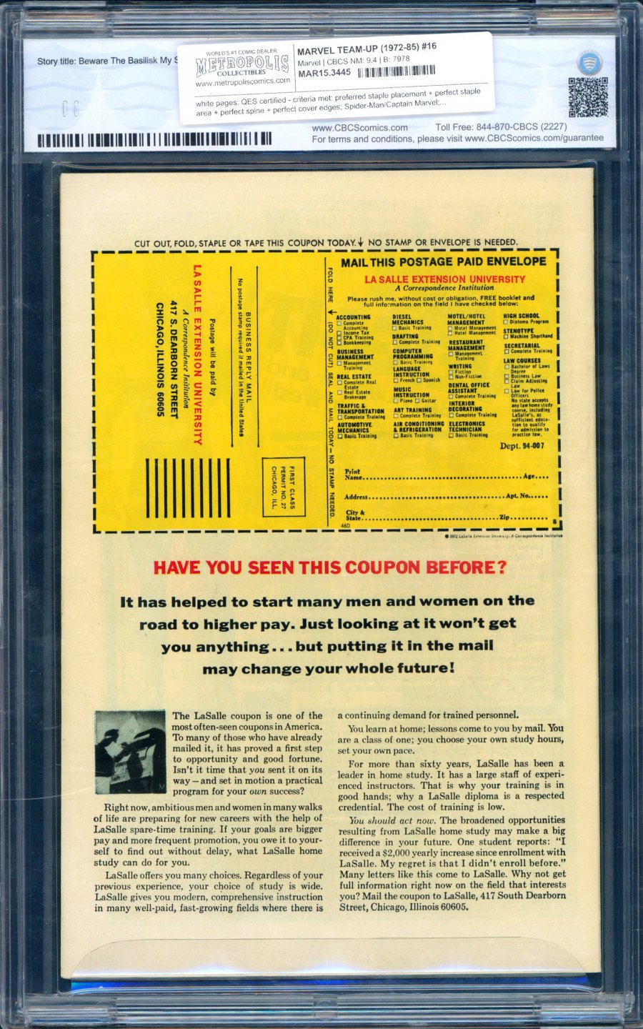Spider-Man/Captain Marvel; 1st app. of Basilisk; COMIC BOOK IMPACT rating of 6 (CBI)