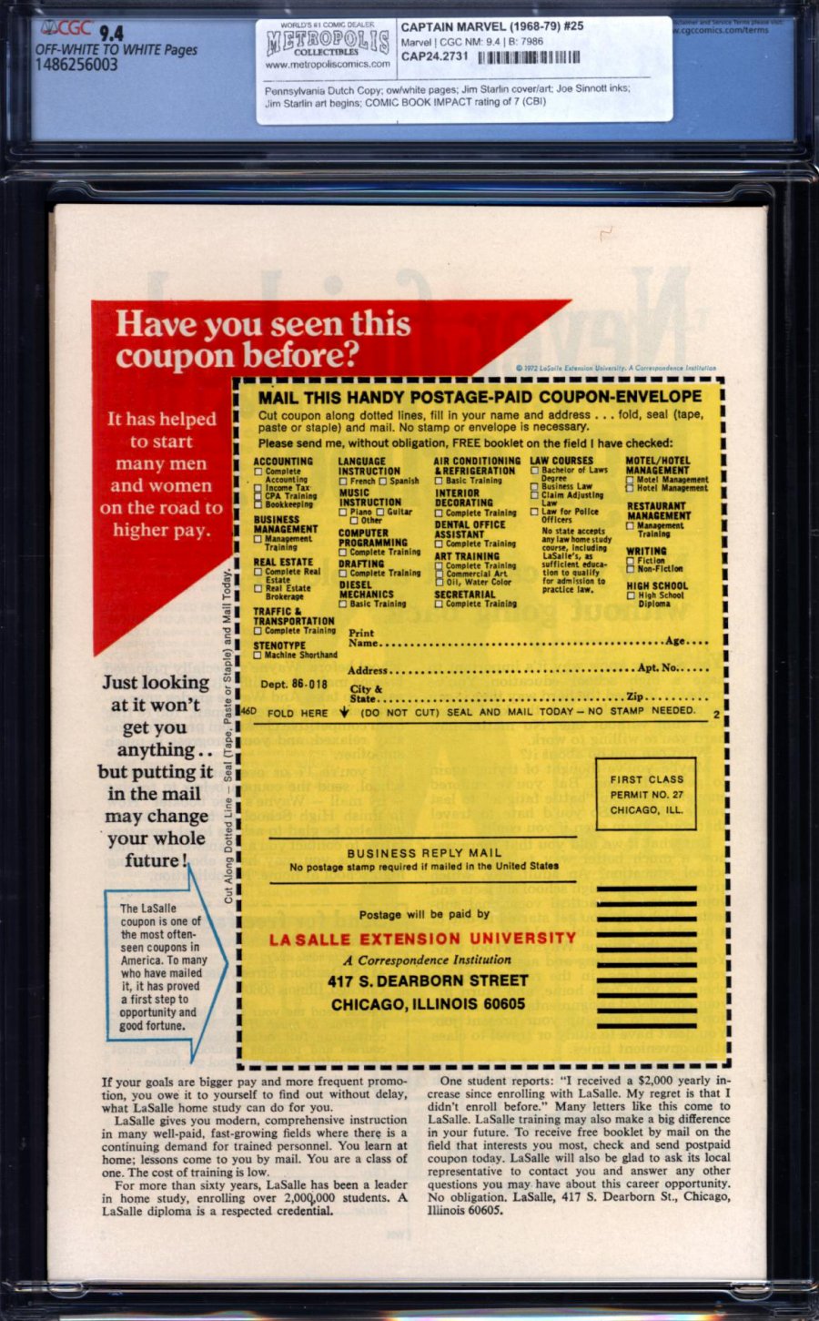 Jim Starlin cover/art; Joe Sinnott inks; Jim Starlin art begins; COMIC BOOK IMPACT rating of 7 (CBI)