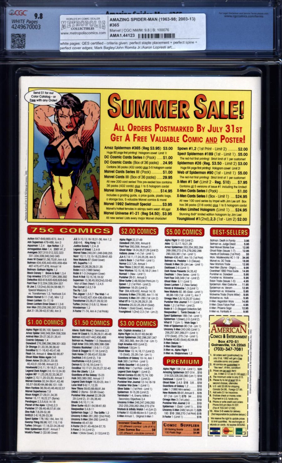 Mark Bagley/John Romita Jr. art; 1st app of Spider-Man 2099; Hologram cover; 30th-anniversary issue