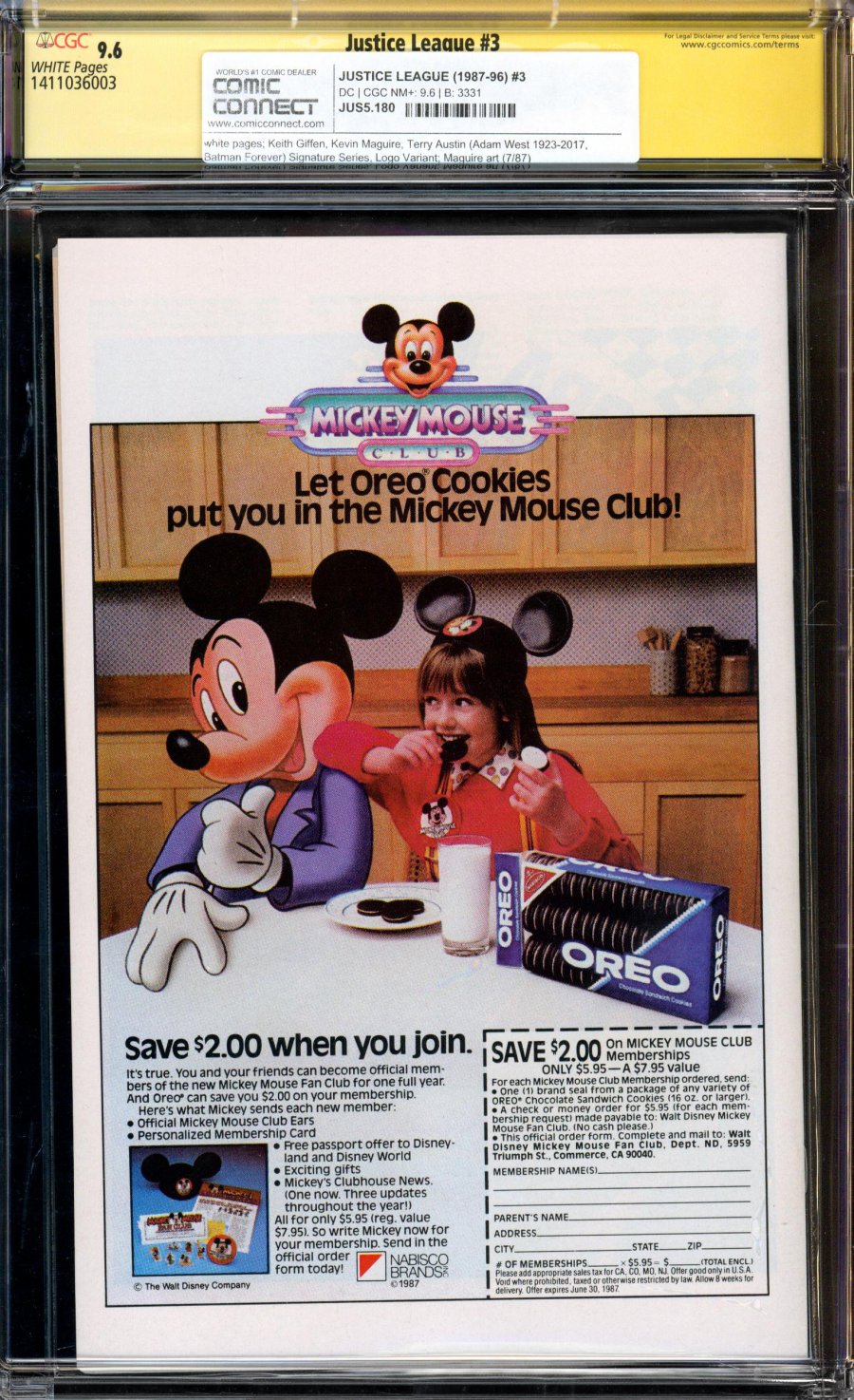 white pages; Keith Giffen, Kevin Maguire, Terry Austin (Adam West 1923-2017, Batman Forever) Signature Series, Logo Variant