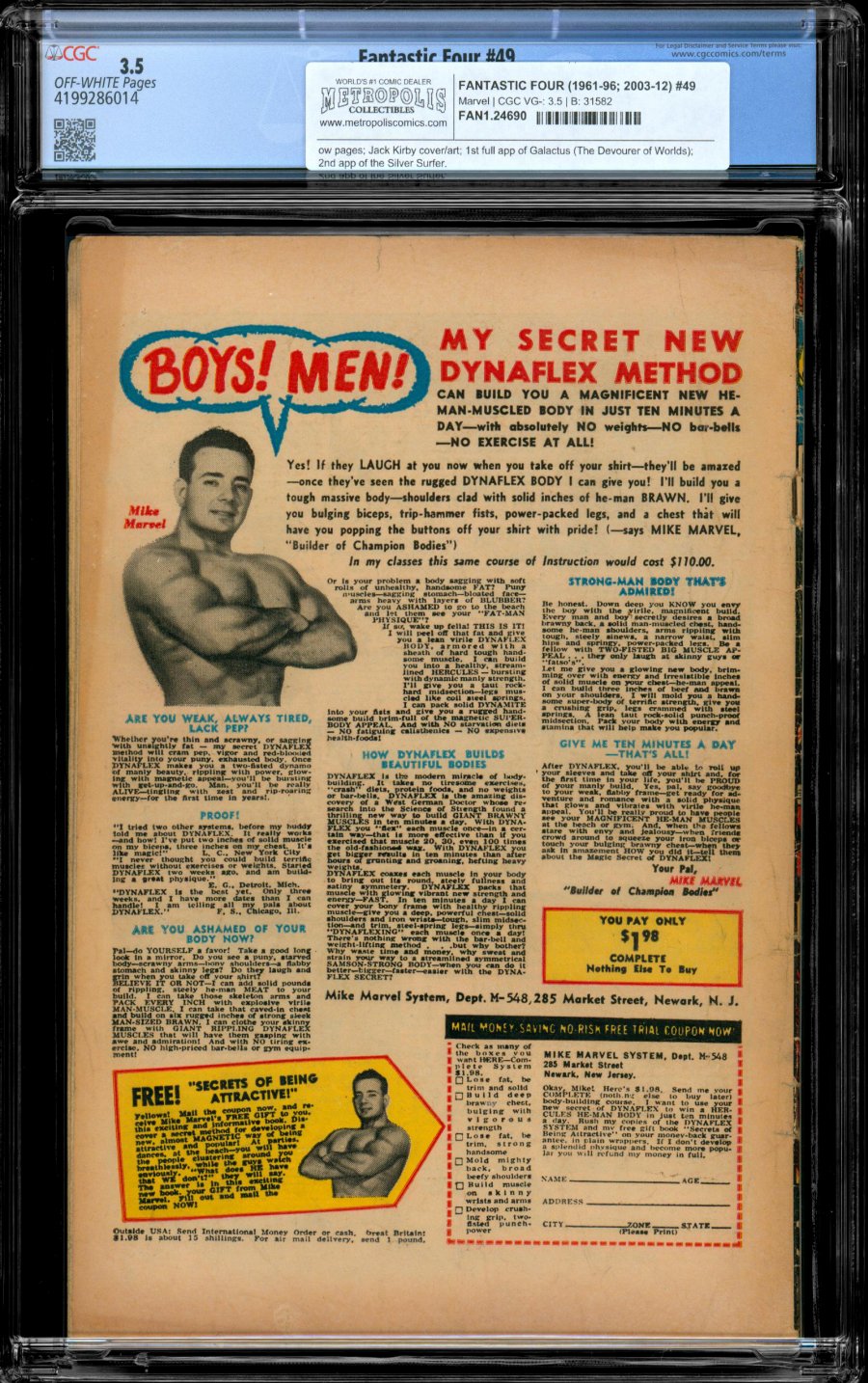 1st appearance of Galactus (full app.,The Devourer of Worlds); 2nd app of the Silver Surfer; Jack Kirby cover/art; COMIC BOOK IMPACT rating of 8 (CBI)