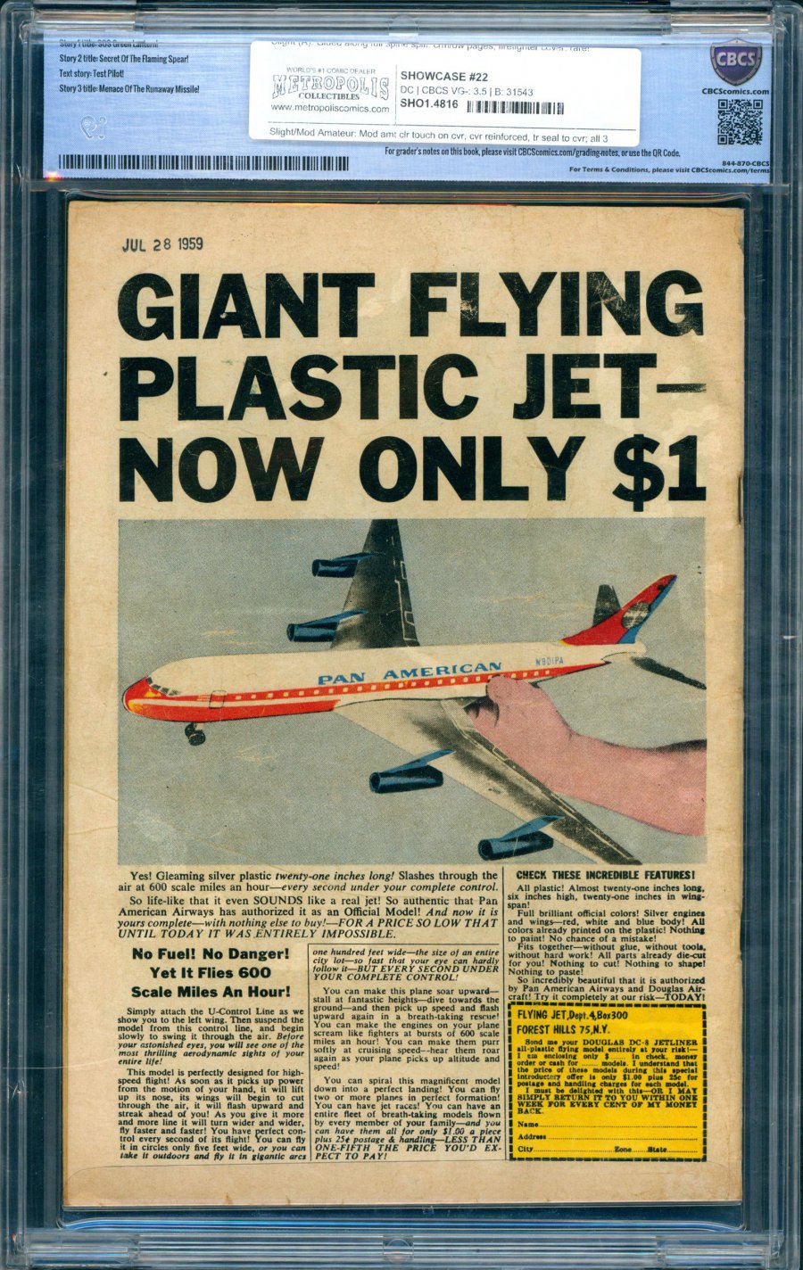 origin & 1st app of Green Lantern (Hal Jordan); 1st mention of Green Lantern Corp; 1st app/death of Abin Sur, 1st Carol Ferris; COMIC BOOK IMPACT rating of 9 (CBI).After the runaway success of the revamped Flash in Showcase #4, DC editors scrambled through the archives looking for Golden Age heroes to rework and repackage for the Atomic Era. Unsurprisingly, the next big hit of the DC Silver Age was a refurbished Green Lantern, who was upgraded to a devil-may-care hero with a science-fiction themed secret identity and origin tale perfectly suited to the Sputnik-era.