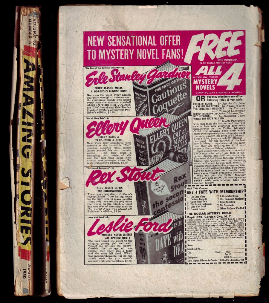 Aug 1950. Robert Gibson Jones cover. SF stories by Williams, Fredric Brown "From These Ashes", P.F. Costello, Franklin Gregory, Russel Branch, Roger Flint Young, and John Bridger. Krupa, Summers, Hinton, Sharp, Swiatek art.