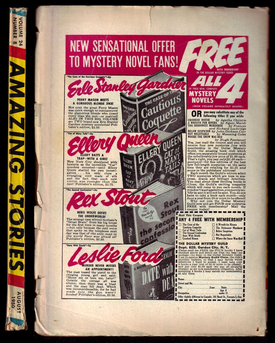 Aug 1950. Robert Gibson Jones cover. SF stories by Williams, Fredric Brown "From These Ashes", P.F. Costello, Franklin Gregory, Russel Branch, Roger Flint Young, and John Bridger. Krupa, Summers, Hinton, Sharp, Swiatek art.