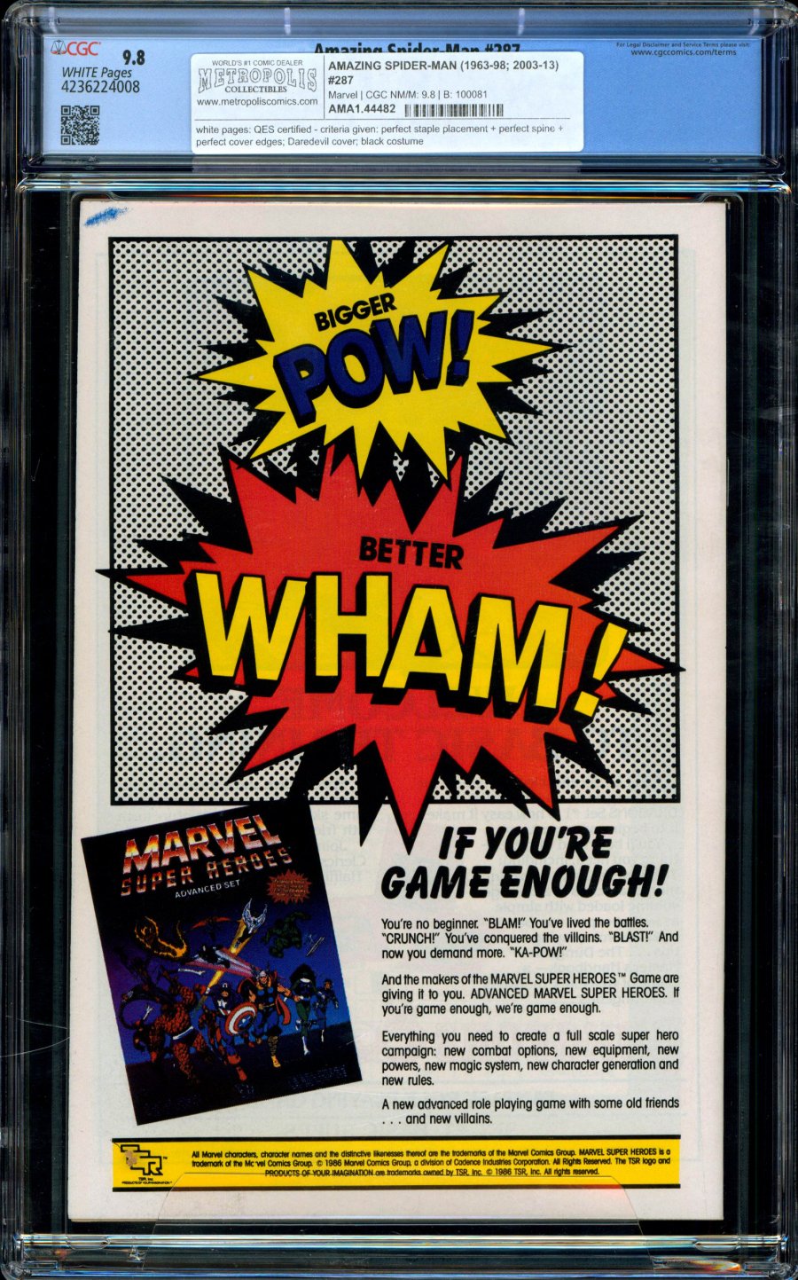 COMMENTS: white pages: QES certified - criteria given: perfect staple placement + perfect spine + perfect cover edges