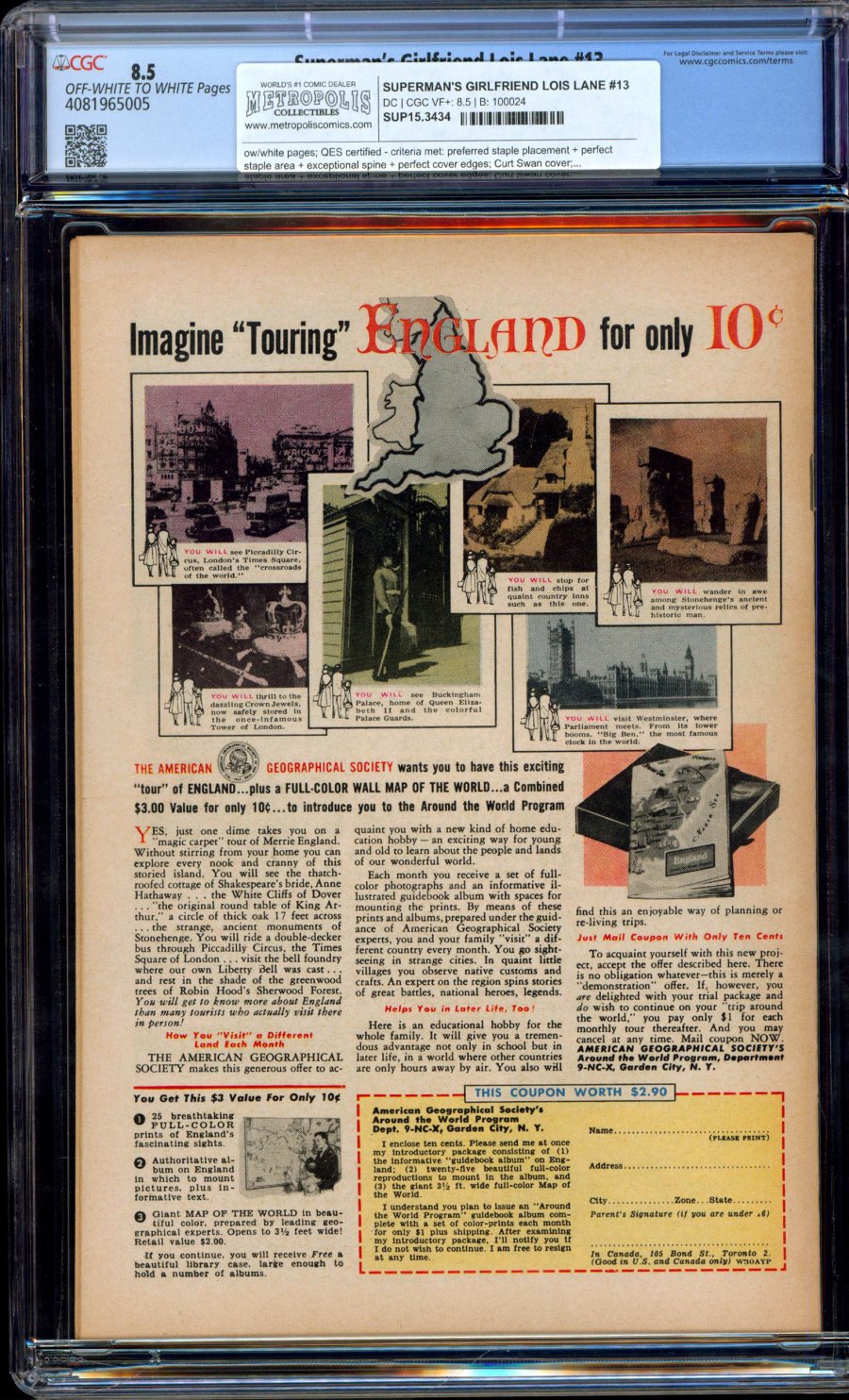 Curt Swan cover; Bernard Bally pencils; Stan Kaye inks; 1st app of Sam and Ella Lane, parents of Louis and Lucy Lane.(Visit the