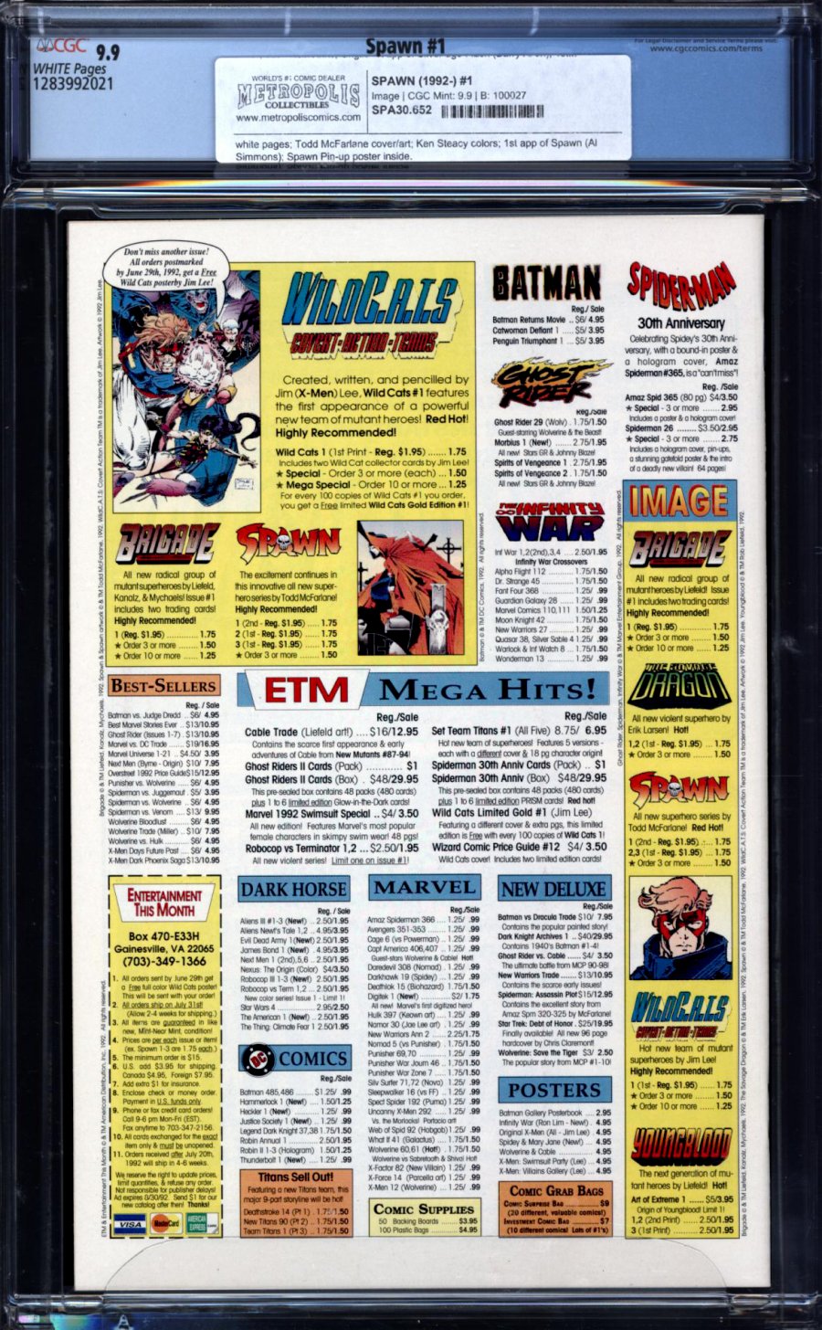 Todd McFarlane cover/art; 1st app of Spawn (Al Simmons); George Perez Spawn Pin-up; COMIC BOOK IMPACT rating of 7 (CBI)